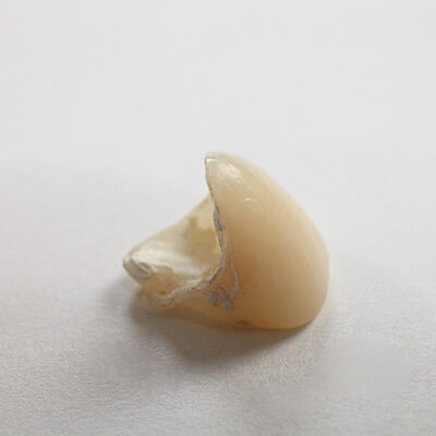 過蓋咬合は、上下の前歯の重なり合いが深く、下の歯が見えない状態です。食事や会話の際に、下あごの動きを抑えてしまい、歯やあごに負担がかかりやすい状態です。特に、かみ込んだ際に、下の前歯で上の前歯を慢性的に突き上げてしまっていると、上の前歯の根っこ(歯根)を障害して歯根吸収などの問題を生じる可能性があります。